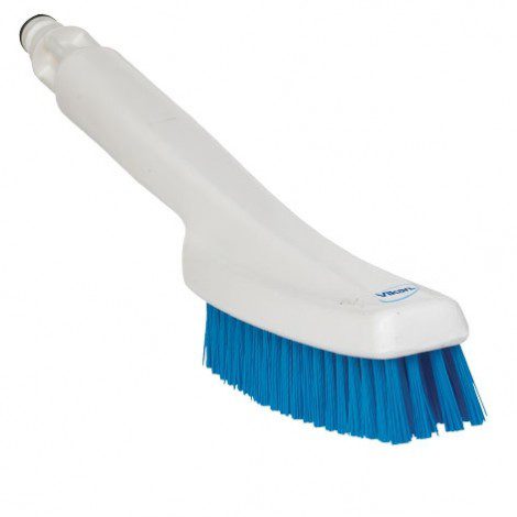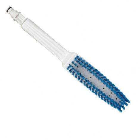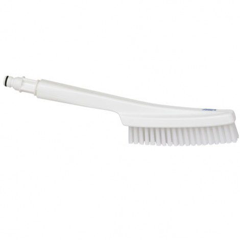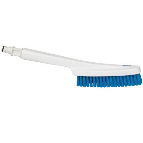El cepillo de mano con paso de agua está diseñado para el lavado y limpieza eficiente de botas. Este cepillo cuenta con la capacidad única de permitir la salida de agua, que discurre por el interior del cepillo y se libera a través de los agujeros entre las cerdas. Recomendado por el fabricante para la limpieza de calzado, este cepillo consume grandes cantidades de agua, haciéndolo menos óptimo para tareas de fregado.
