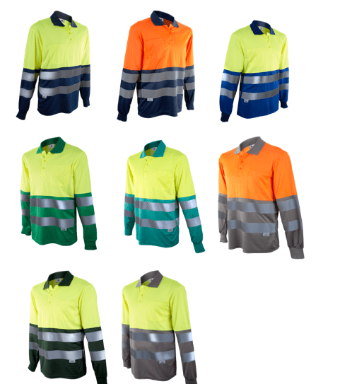 Colores: Amarillo/marino, naranja/marino, amarillo/azulina, amarillo/gris, naranja/gris, amarillo/negro, amarillo/verde oscuro, amarillo/verde medio, amarillo/verde claro Tallas: 2XS – 5XL